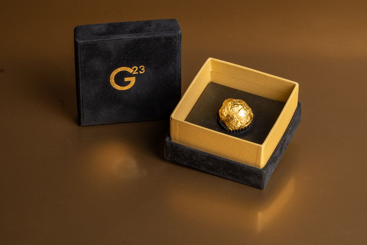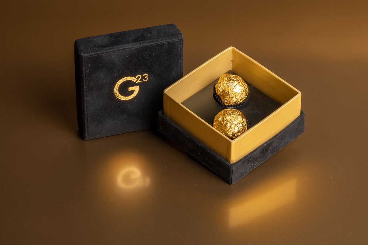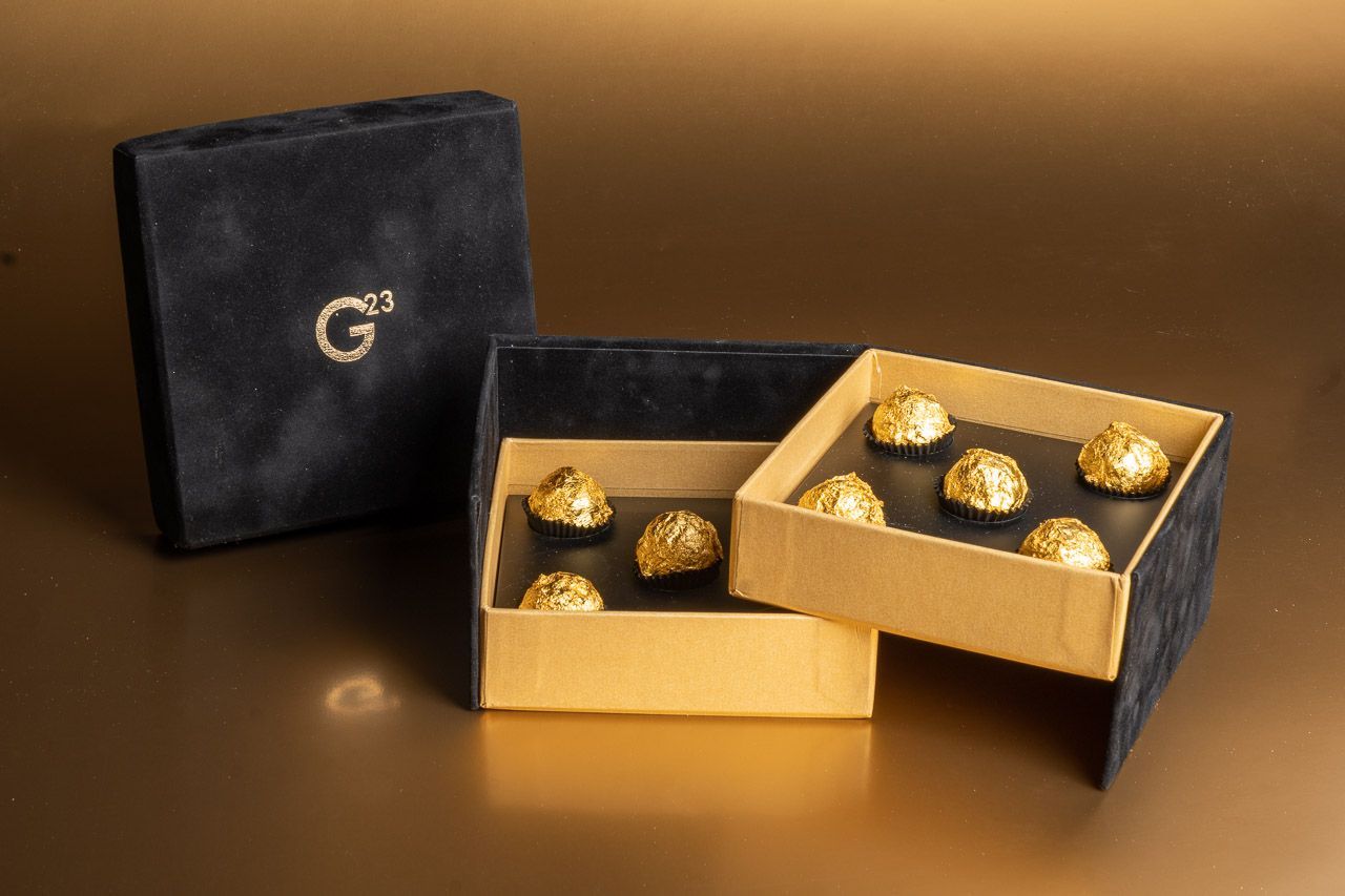Se vuoi provare un'esperienza gastronomica unica nel suo genere, non puoi perdere il Chocolate Luxury G23 ideato da Stefano Camozzi. Un cioccolatino introvabile in ogni parte del mondo, profumo inconfondibile di tartufo, dolcezza del cioccolato che si fonde con l'alta salinità himalayana, ricoperto dai carati della foglia d’oro, perfettamente commestibile.